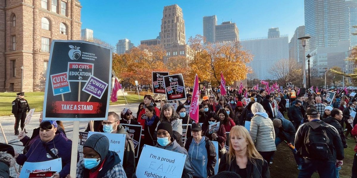 The Ontario government recently passed a law that would prevent the Canadian Union of Public Employees (CUPE), from negotiating a new employment contract for Ontario's 55,000 education workers. The law has received criticism for being passed before any negotiation was able to take place. It was pushed through with the Notwithstanding Clause, which allows the Ontario government to make decisions that override the Charter of Rights and Freedoms. The result is that 55,000 workers, who are asking for a small raise of $3.35/hour, will be forced to return to work, without the right to negotiate. They could be forced to strike illegally, which might result in thousands of fines for each worker.